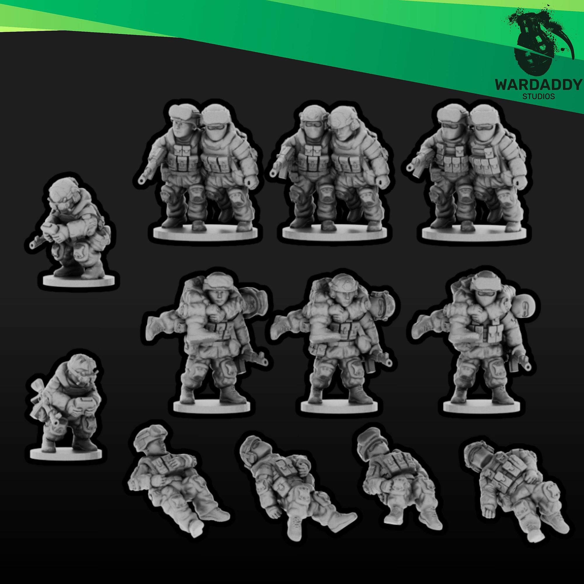 This collection showcases modern soldiers fighting in Eastern Europe. There are other squads in our catalogue that accompany this set allowing the creation of larger forces.
