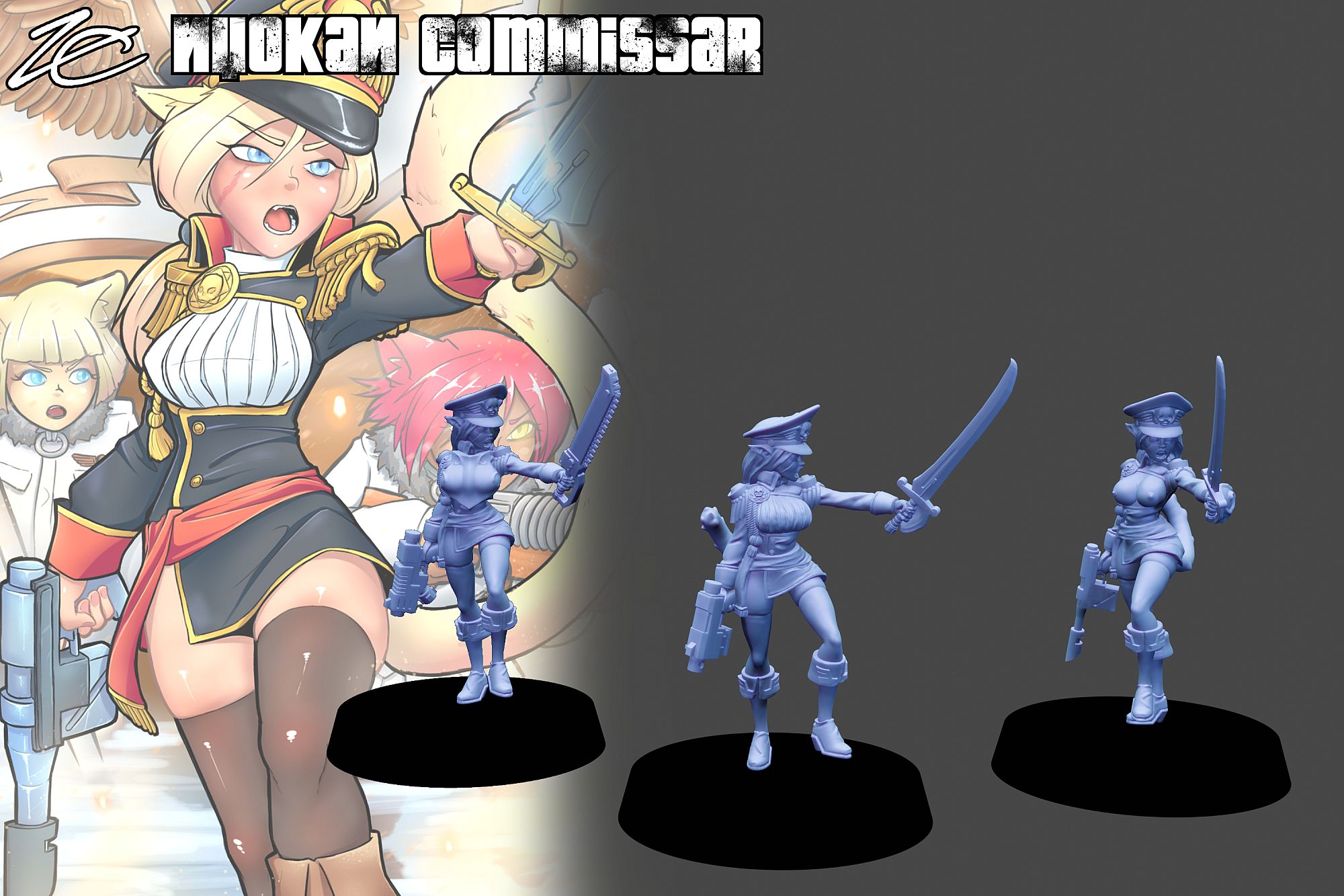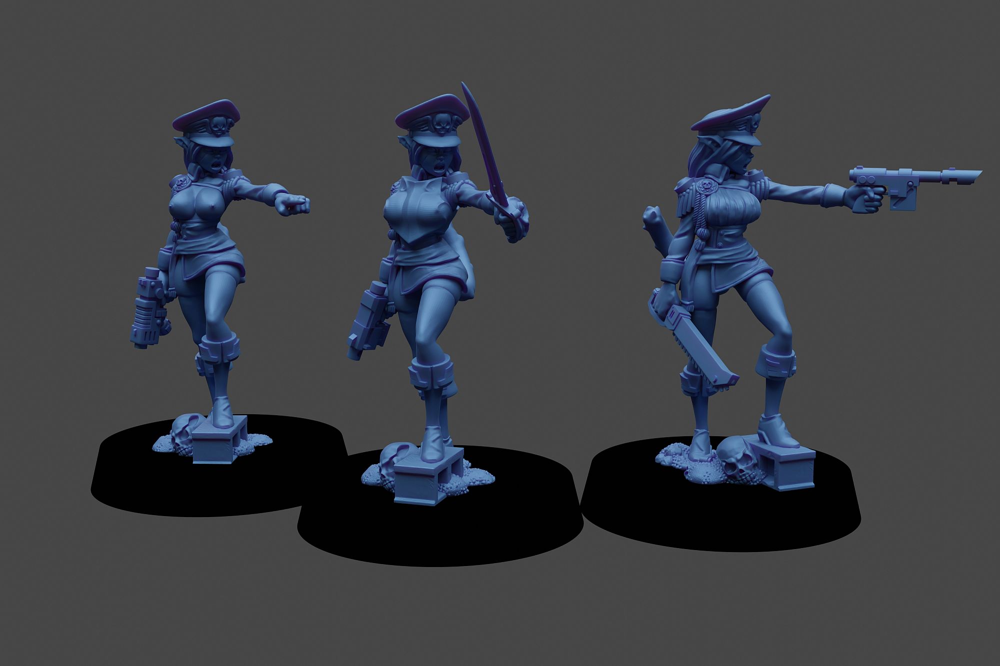 This set includes Topless, Standard, and Breastplated versions of the commissar each equipped with a Boltpistol, Laspistol, or Plasma Pistol, as well as an empty handed version so that those familiar with 3d software might equip her with any sort of weapon that might fit! Similarly with the separated arm holding her chainsword or power sword!